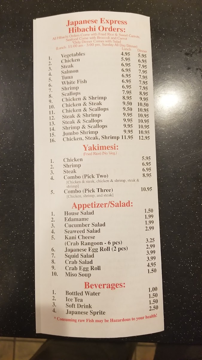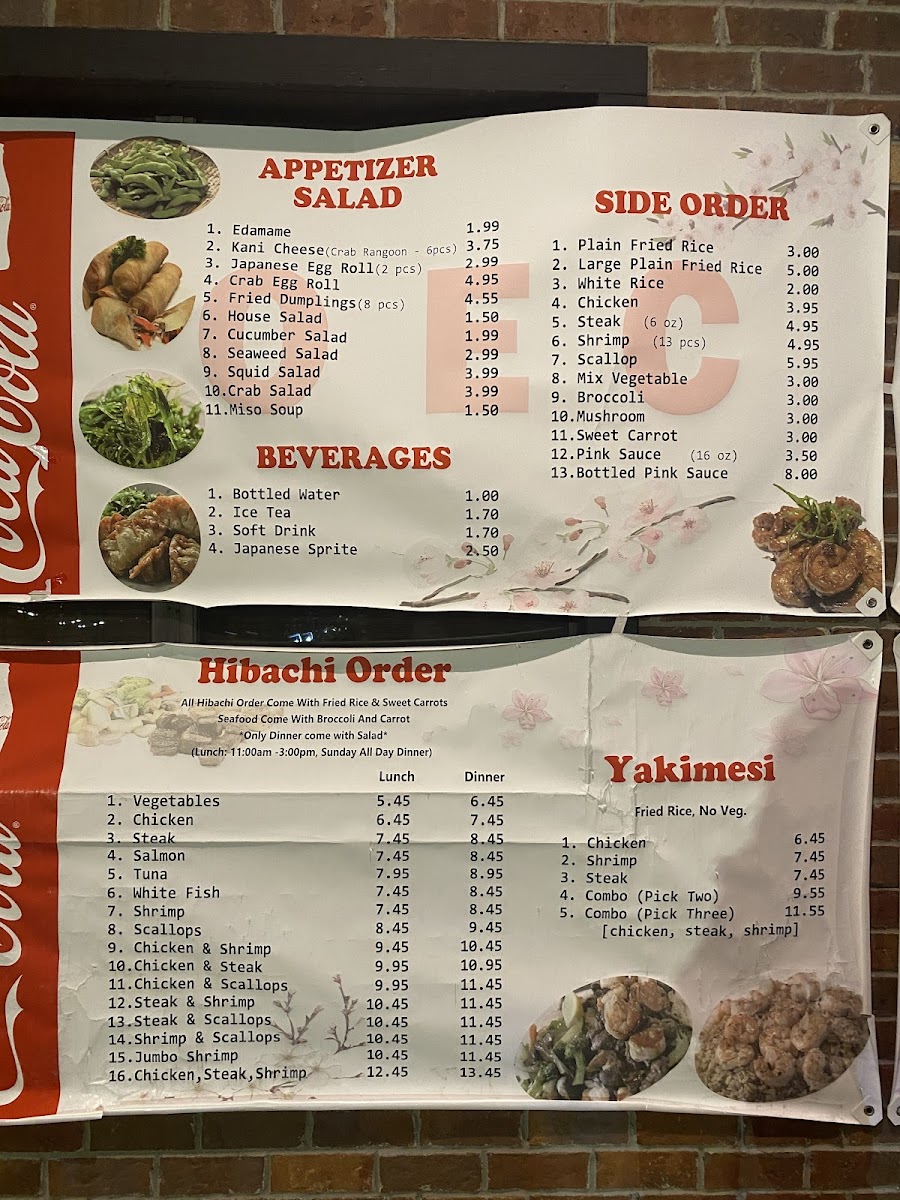 This is the kind of place where you might stop by for a no-fuss meal that fits a busy day or a relaxed evening with friends. The beverages selection keeps things easy with choices like Japanese Sprite and iced tea, rounding out meals with refreshing, uncomplicated drinks. Whether you’re in the mood for a combo of sushi rolls or a warm plate of hibachi, the offerings match the welcoming, unpretentious atmosphere of this local spot.